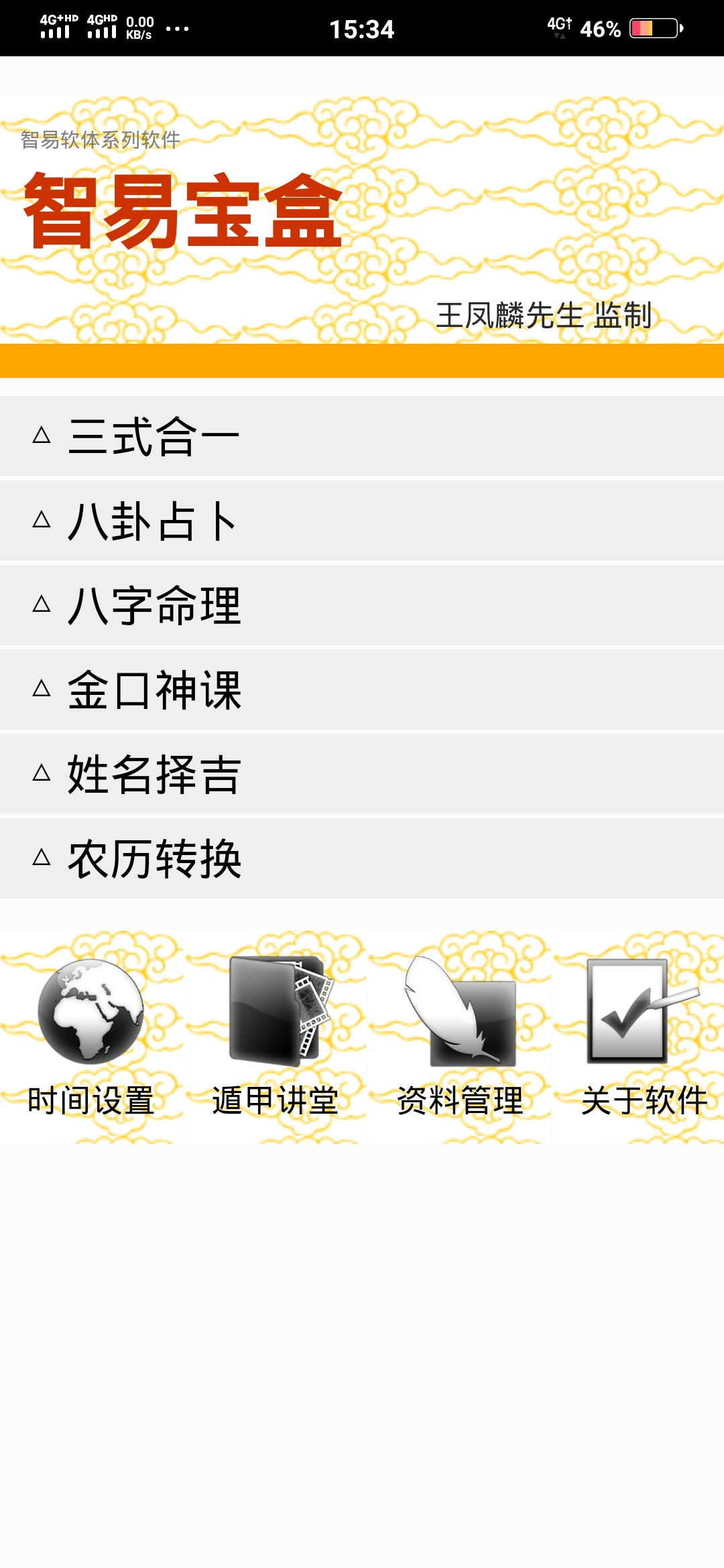 新增安卓版王凤麟智易宝盒多功能软件,内有道家阴盘六壬、阴盘山向奇门,刻盘奇门,王凤霖阴盘三式软件,阴盘奇门,山向奇门,阴盘六壬,奇门穿壬,壬遁命盘,阴盘太乙,八字命理软件,道家奇门,转盘奇门,飞宫奇门,鸣法奇门、天机奇门,六爻,八字,金口诀,五格姓名软件等排盘内容。