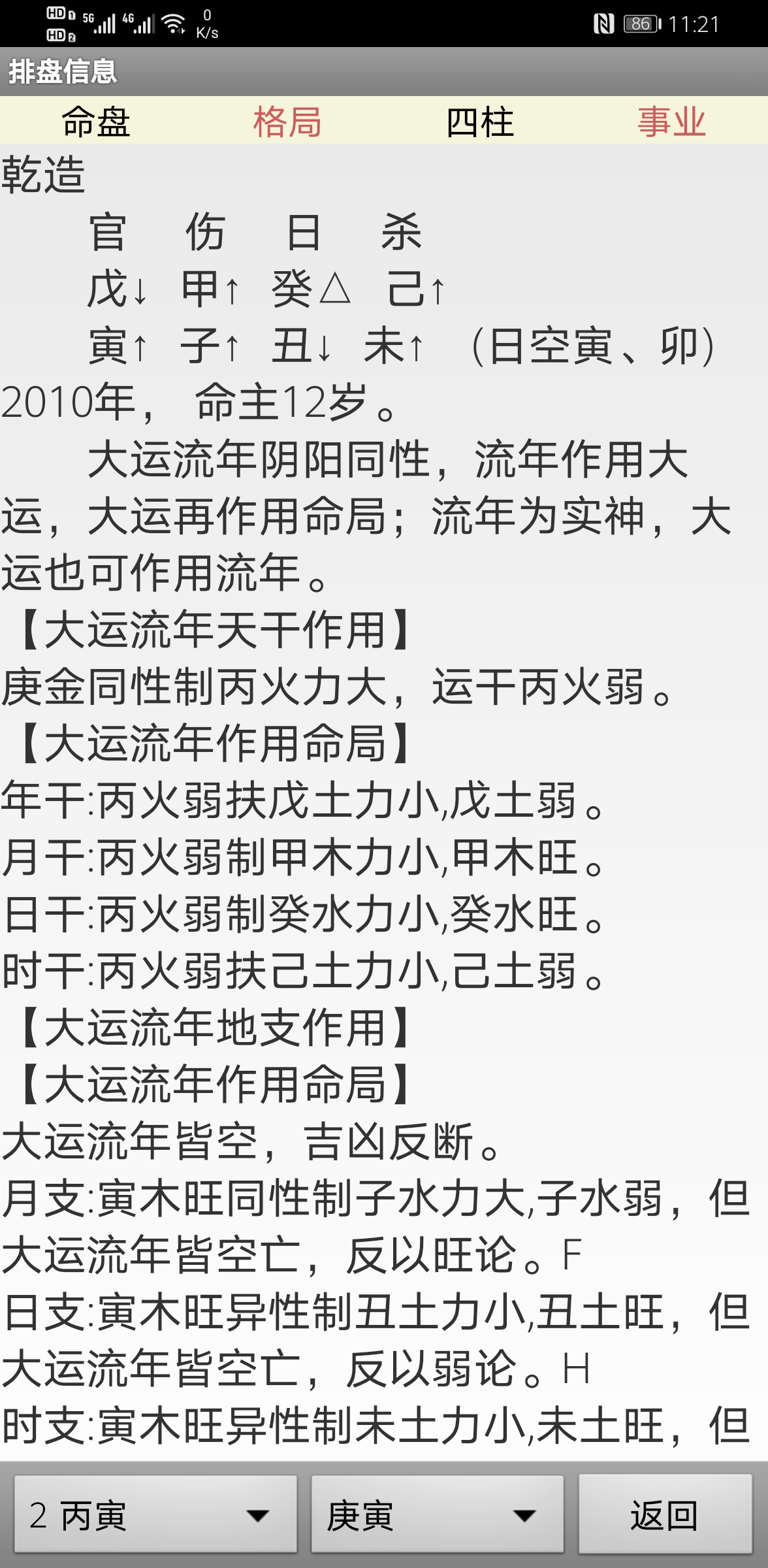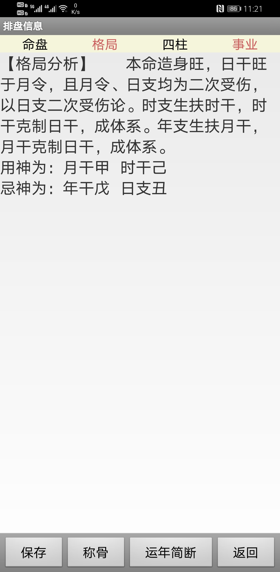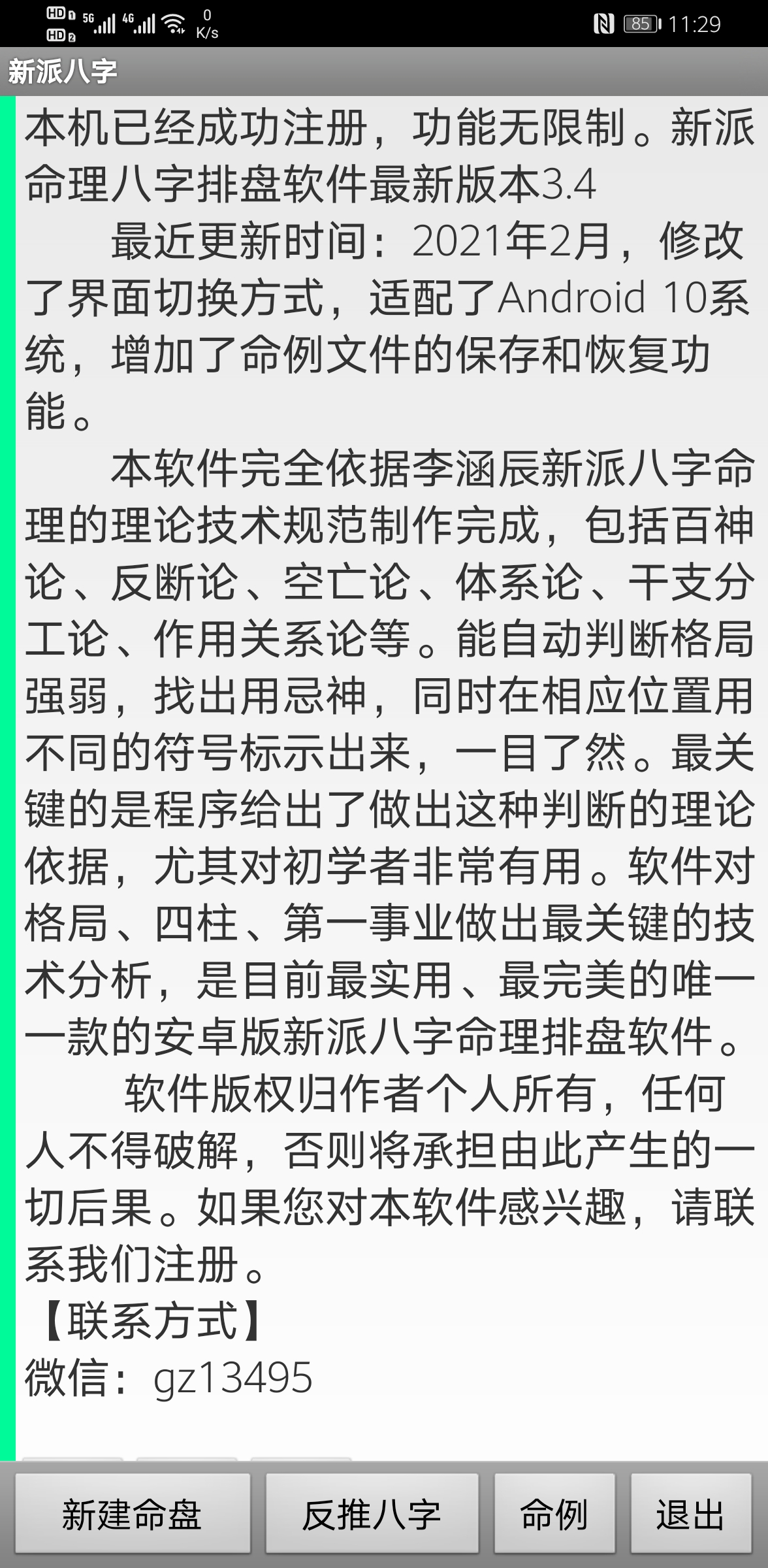软件,安卓版新派八字命理排盘软件,李涵辰八字软件完全根据李涵辰新派八字的理论技术规范制作完成,包括格局分析、八字分析,百神论、空亡论,虚实论,内外环境论,反断论,内外体系论,干支分工论,作用关系论等,可反推八字,能自动判断八字格局强弱,找出用神忌神,并对格局、四柱、第一事业做出最关键的技术分析,是目前唯一的安卓手机版的李涵辰新派命理八字排盘分析软件。
