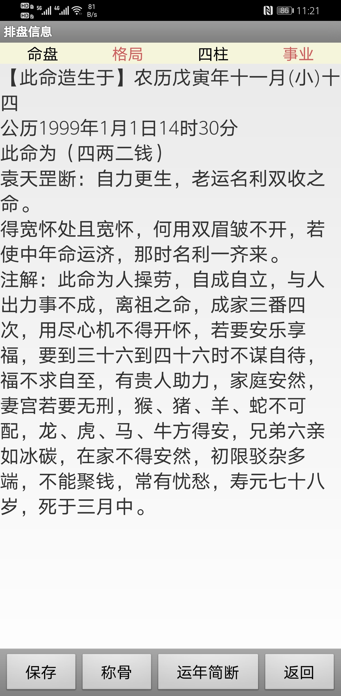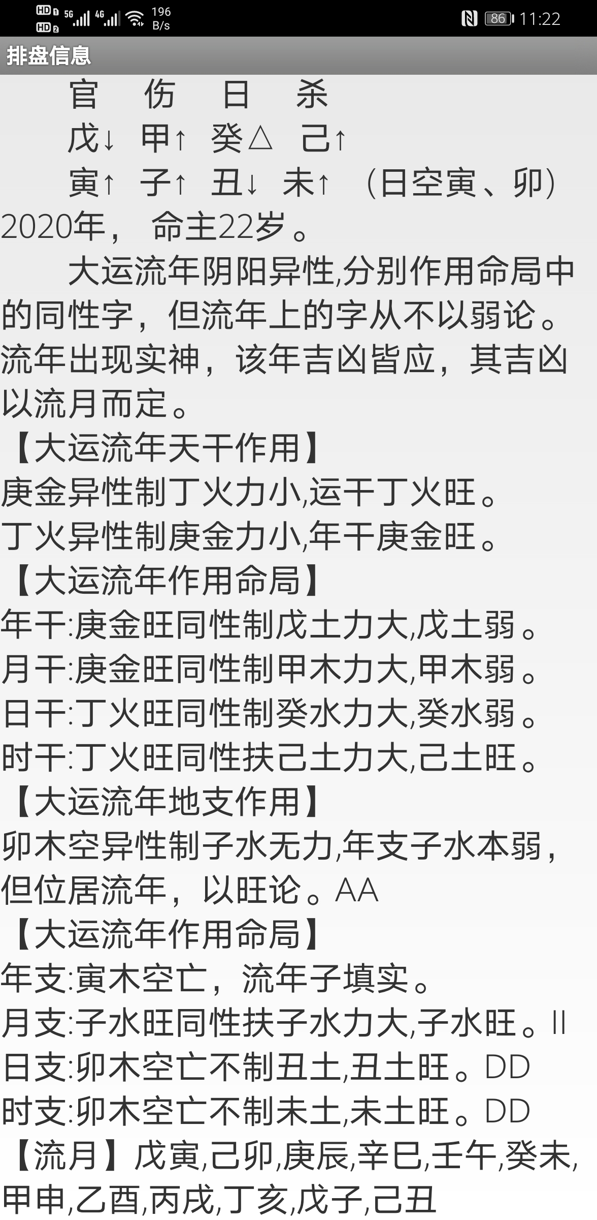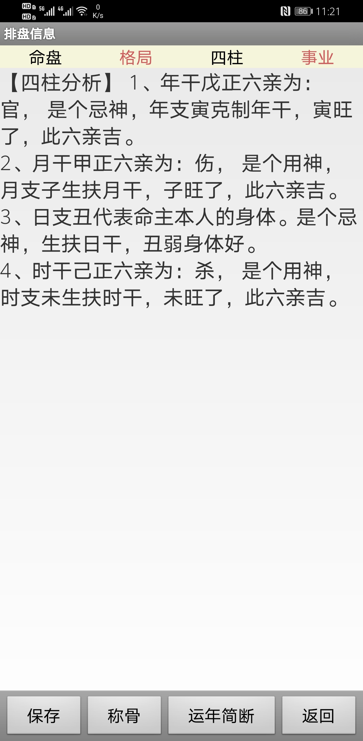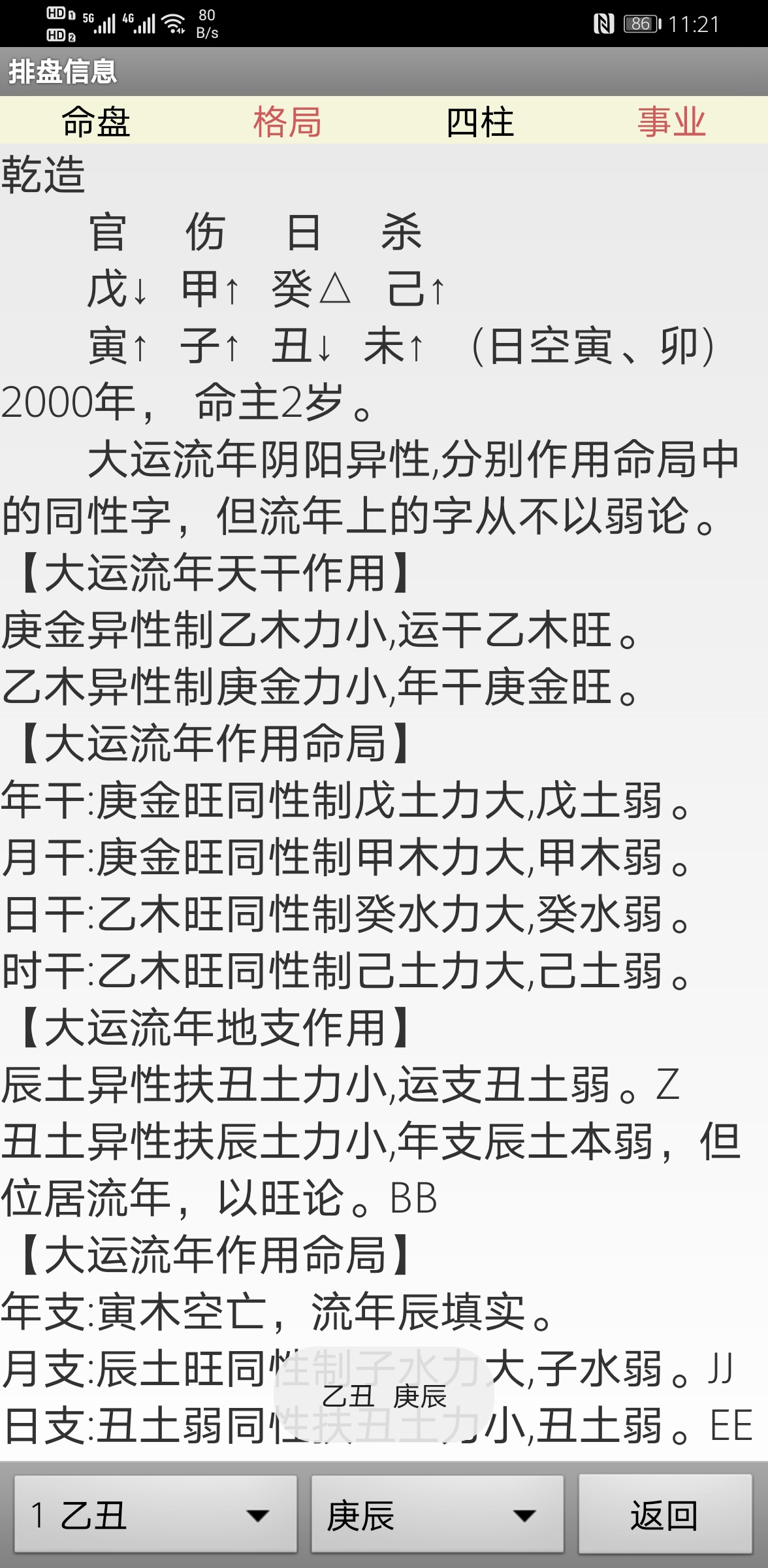 软件,安卓版新派八字命理排盘软件,李涵辰八字软件完全根据李涵辰新派八字的理论技术规范制作完成,包括格局分析、八字分析,百神论、空亡论,虚实论,内外环境论,反断论,内外体系论,干支分工论,作用关系论等,可反推八字,能自动判断八字格局强弱,找出用神忌神,并对格局、四柱、第一事业做出最关键的技术分析,是目前唯一的安卓手机版的李涵辰新派命理八字排盘分析软件。