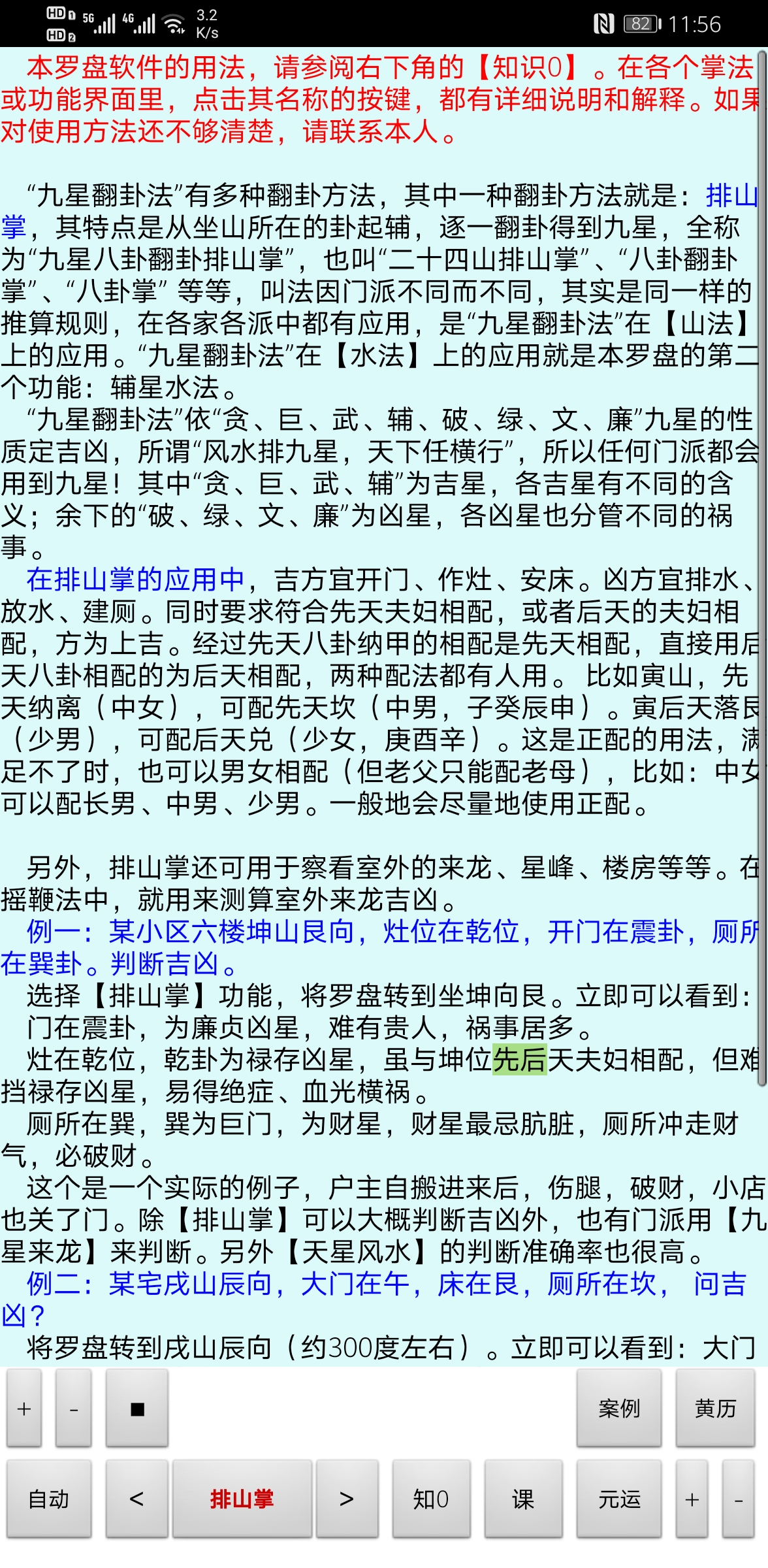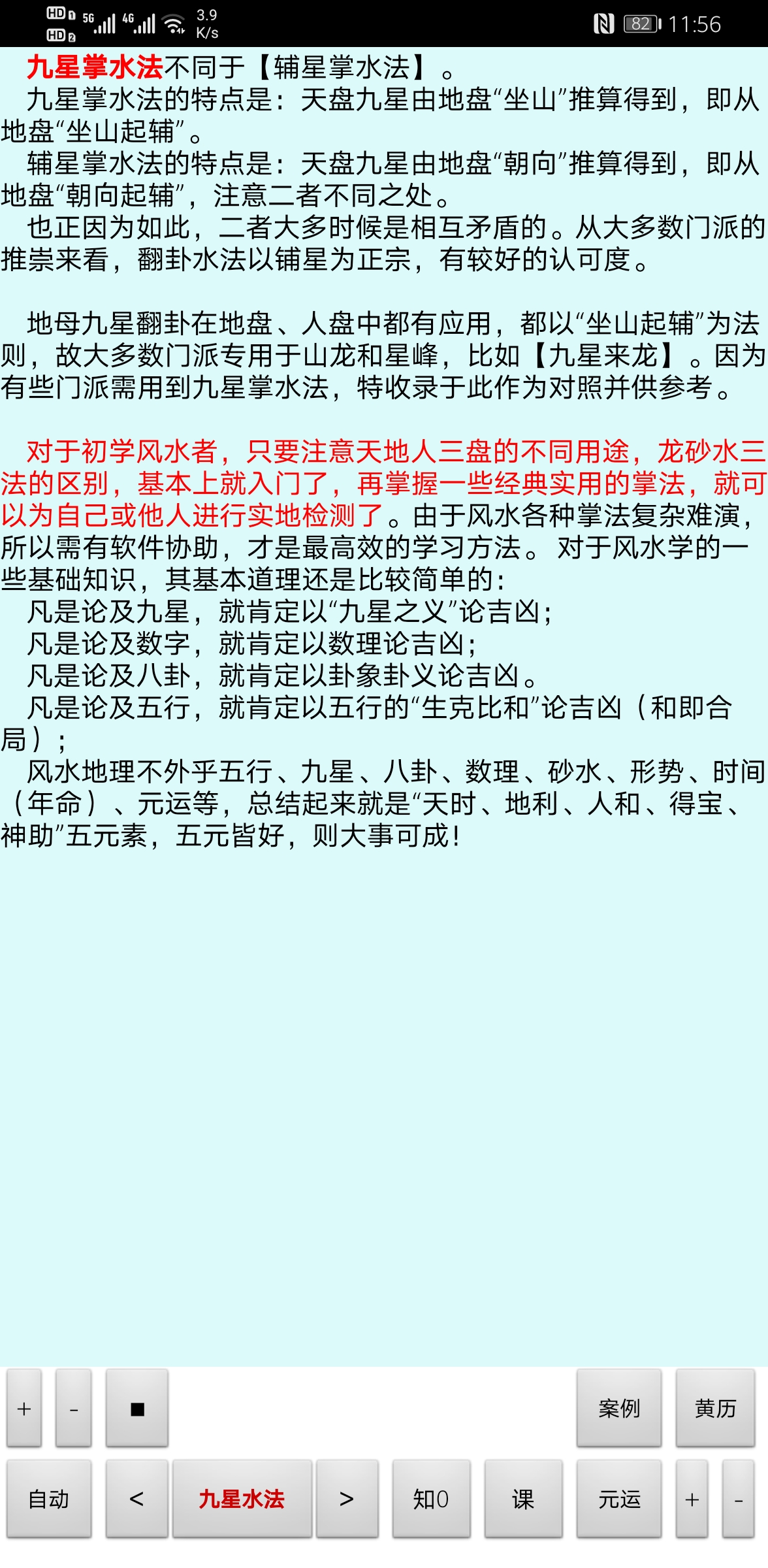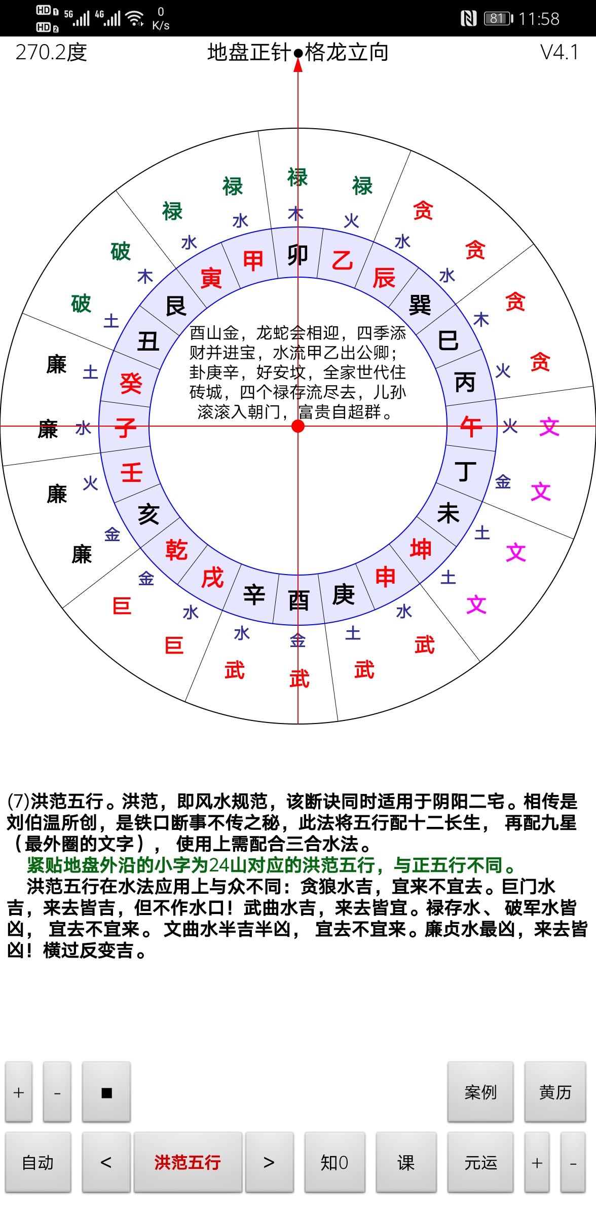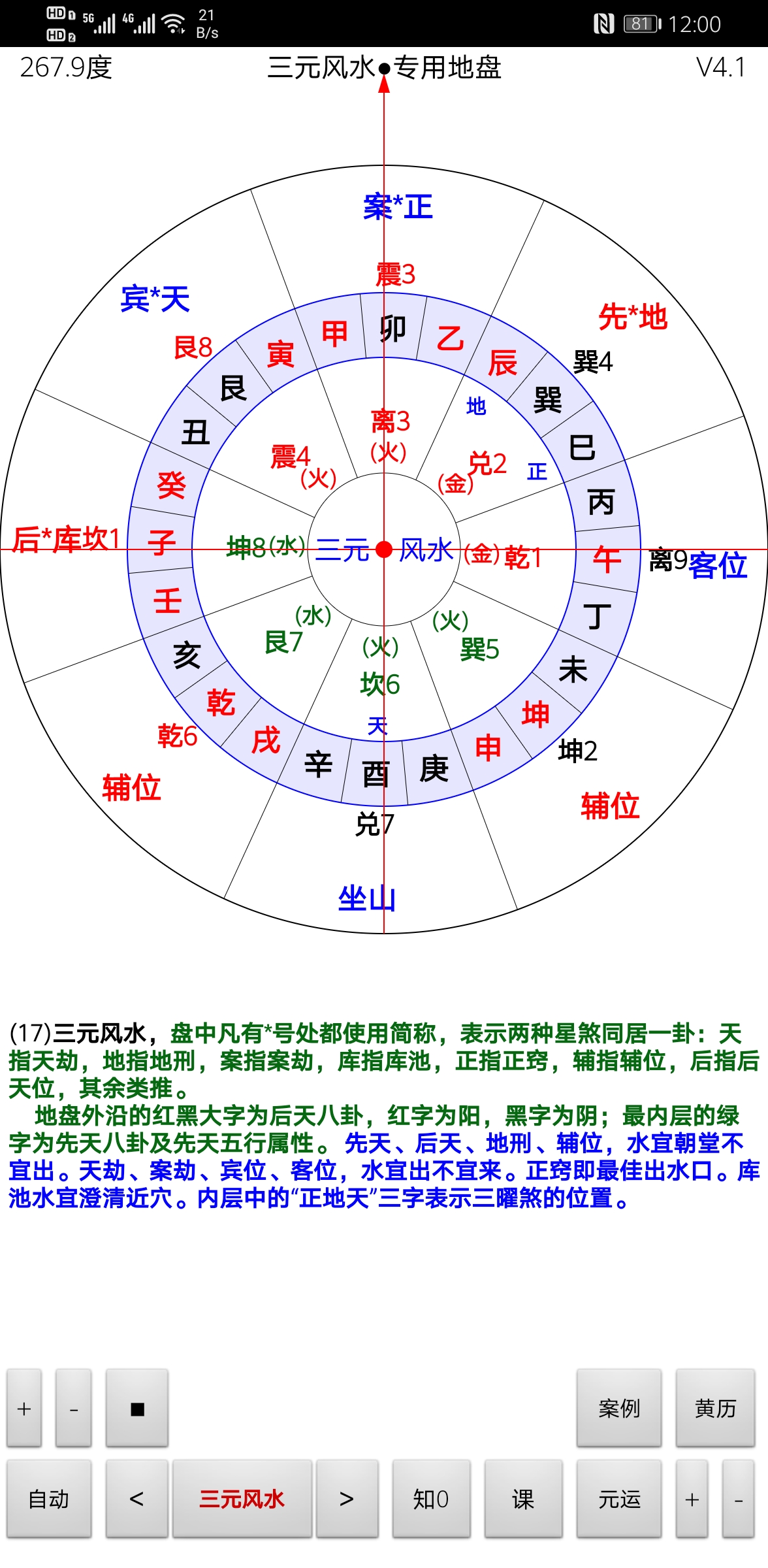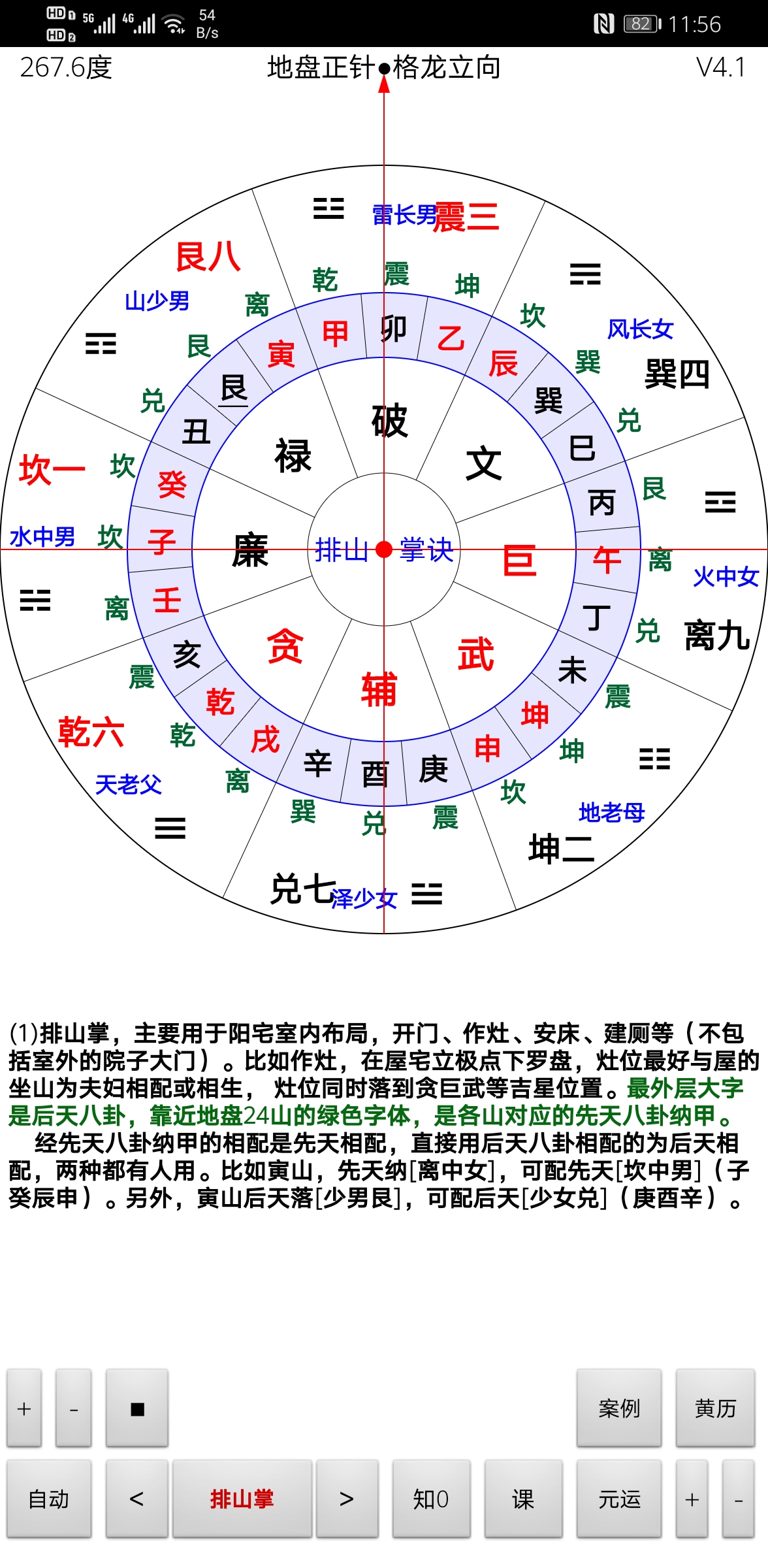 本罗盘软件适应各种分辨率的安卓手机,罗盘中每一个字,第一条线都是由代码生成,绝不是模糊的罗经图片,所以体积很小,界面精准无差!所收集的内容均为业内人士普遍认可的精华方法,比如九星掌、排山掌、辅星掌、立向分金、洪范断宅、玄空风水、 赖公断宅、纳甲择日、玄空择日、抽爻换象、天星风水、四大水口、龙虎水法、三元风水、三合水法、各类神煞等等,融合了三元、三合的内容,同时整合一百二十龙、七十二龙等等内容。