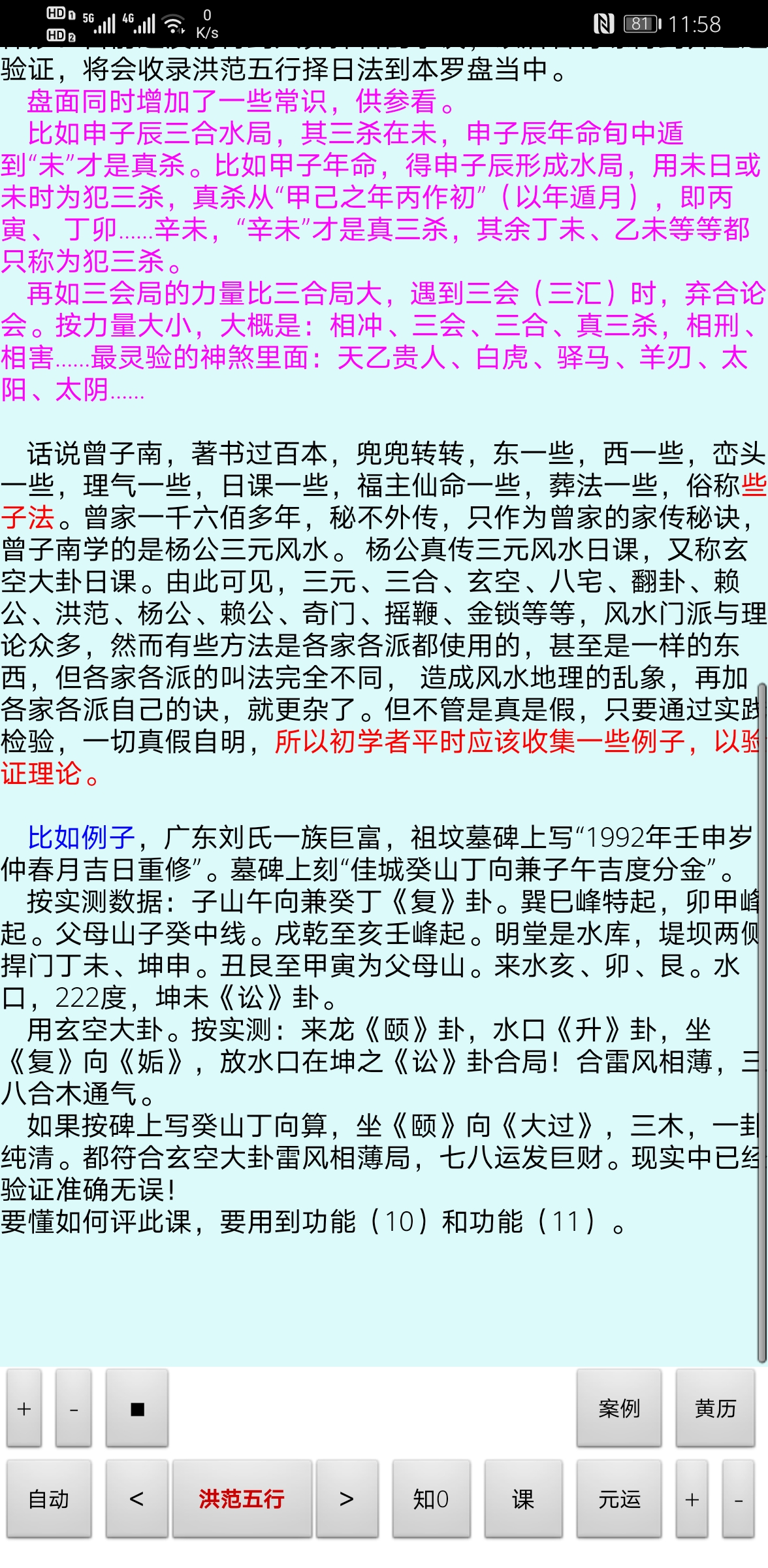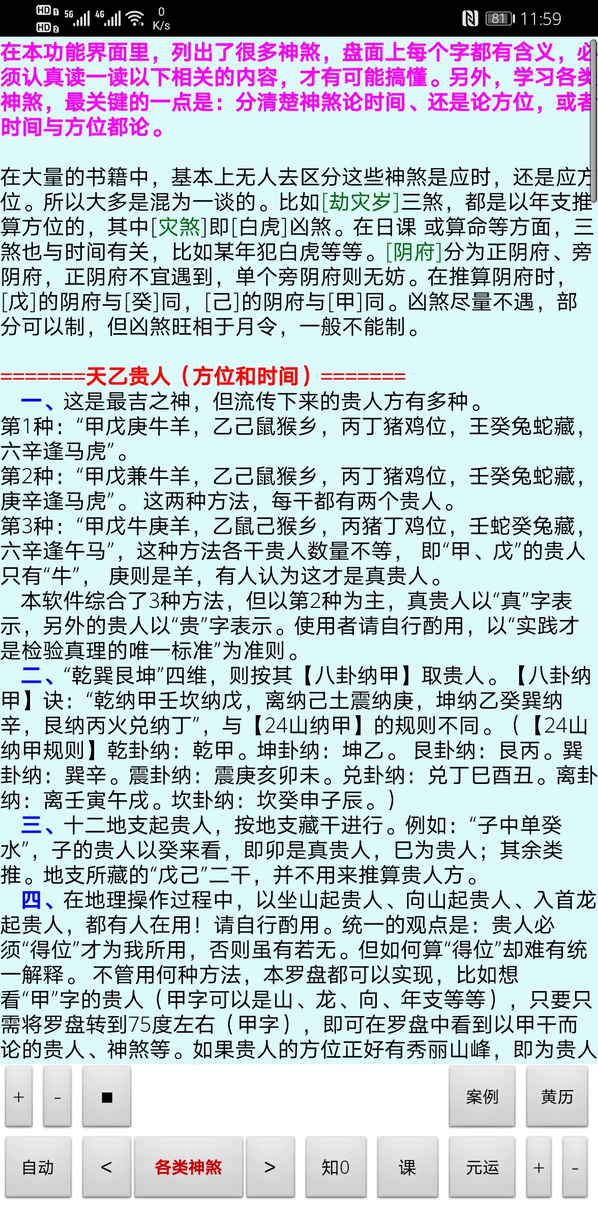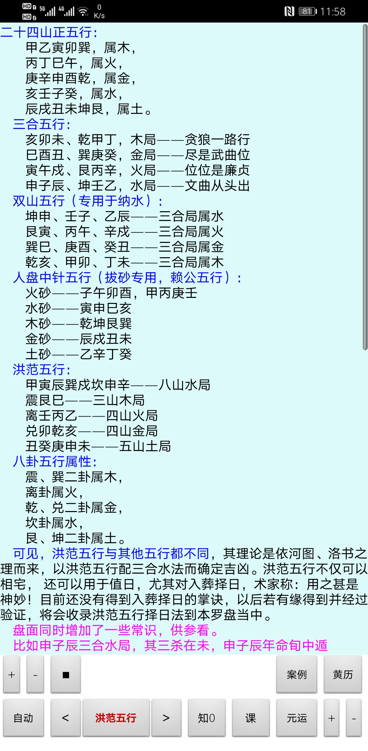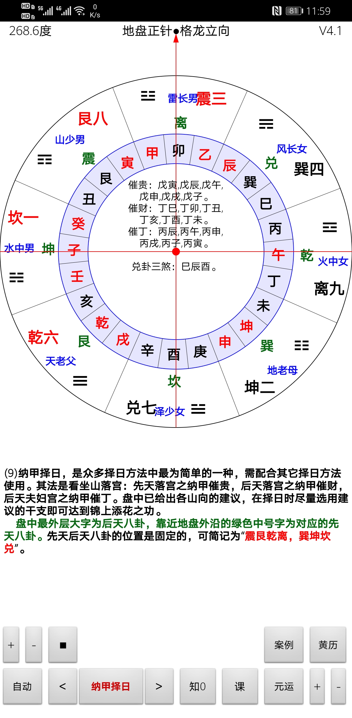 本罗盘软件适应各种分辨率的安卓手机,罗盘中每一个字,第一条线都是由代码生成,绝不是模糊的罗经图片,所以体积很小,界面精准无差!所收集的内容均为业内人士普遍认可的精华方法,比如九星掌、排山掌、辅星掌、立向分金、洪范断宅、玄空风水、 赖公断宅、纳甲择日、玄空择日、抽爻换象、天星风水、四大水口、龙虎水法、三元风水、三合水法、各类神煞等等,融合了三元、三合的内容,同时整合一百二十龙、七十二龙等等内容。
