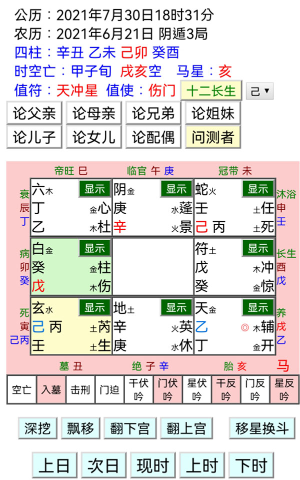 想要此款软件请进入详细介绍页面http://www.0797sm.com/portal.php?mod=view&aid=1511 地盘在奇门结构中是基础性的东西。预测的每一种事到每一个宫里,会遵循每个宫里的特性走。因为人事活动和事物的发展都会遵循所处的环境。 乾宫――重要的,落乾宫测的事都比较重要。庞大的,涉及面广。难度大。乾为天主高,事情起点高,阻力大。测人为成就高,大人物都落乾震离三宫。一般发大财的落坤坎宫。人则有广阔胸怀,层次高。孤芳自赏,清高。测职业,不是大单位就是政府要员,有社会地位的人。落离宫也一样,火主名声。 坎宫――不稳定性,曲折,劳心。事情总不会顺利发展,总会有些波折才能达到结果。测人则有忧患意识。智者。 艮宫――事物易停滞不前,一步一个脚印,稳稳当当的,慢,测人也是慢性子,但讲诚信,固执。 震宫――突发性的,机遇突然来临,没有预期的。 巽宫――进退不果,犹豫不决。坎宫虽然曲折,但却是不断往前走的。巽宫主徘徊,时好时坏。 离宫――轰轰烈烈,虎头蛇尾。一开始声势很大,但难以持久。测人好面子,重场面。 坤宫――有包容性,有随和的,平易近人的,脚踏实地,有时也不切合实地。有时想的大,想的长远,但难以做到。做事要从小事着眼。胸怀广阔。适合做大众的工作。大多演员,画家,艺术家都落坤宫。因坤主群众。但很难有政府要员,都是做具体工作,基础工作的。 兑宫――光有语言,光说不练,会有意外之事发生。会因一些因素产生破坏性。 人的因素在奇门中用八门去体现。从表里来讲,八门只是表。八门旺衰以月令为主。 戊是已经拥有的钱财,一露头就要破财花钱。除非戊临生门,可以进来财又花一部份。 生门――房子,钱财,有生机。做生意的人。希望。 伤门――伤害别人,或受到伤害。伤脑筋。伤心,难过。临伤门的人一般都有能力。 杜门――堵住,堵塞。牢狱,看管之意。牢房。技术。堵塞不通之意。信息不灵。保密。测人慢性子,内秀,不爱说话。 景门――消息,音讯。 死门――结果。没有希望,毫无生机。看一处地,坤宫伏吟死门+庚,断西南是个大垃圾坑。因土死了就是土没了,空了。身上有死门,就是伤疤或残疾。 惊门――瑟瑟发抖,心惊胆战之意。口舌。八字临辰酉的人爱吃。惊恐,担心,心慌。遇伤和惊门口才都好。但伤门说话,出口就伤人,威慑力特别大。惊门爱唠叨。 开门――开始,新的起点。工作。事业。事物开始之意。性格开朗。心无城府,公开性的。 休门――休养生息,临休门若是大的公司都是人事上出现了问题。休门主人事。测人为需要好好调养,身体或事业上的调养。公门人。休门主水,无休止的工作。 三奇为重大机遇,八门需要有重大机遇配合。 乙――花草,柔弱,妩媚,弱不禁风,需要太阳的照耀,测事为委曲,不稳定,左右摇摆。但不见得是坏事,委曲求全就能成功。以柔克刚。测性格为柔顺,依附。阴木,不积极的,有消极的一面。遇到乙丙丁,都代表机遇,奇迹,希望。装饰花草,首饰,头发。肝胆,脖子,膝盖。测路为拐弯的地方。 丁――星星,希望,顺利。但也有破坏性。测婚姻为第三者破坏家庭。测病为手术刀、针灸。测意外伤灾,为伤疤、口子。小女孩,情人,奇迹,机遇,文书,证件。在人体为心脏,眼睛,牙齿,口,舌,骨质增生,骨刺,轻微炎症。丁是弱火,电灯,手机电脑,丙是强火。丁+戊为路灯,丙+戊为变压器。 丁为香火,丙为厨灶、烟囱。癸+丁,壬+丁,女性测为妇科炎症。 丙――太阳之火,多了就乱了,但也不能没有。麻烦,乱子。丙+丙,大麻烦。过火的事。水也不能多,水多测漂。重炎症,发高烧,肿胀。 戊己庚-―戊己庚都为肿块,戊为多余肉,不分裂,良性的肿瘤。己为囊肿,有水。庚是恶性肿块,肿瘤,具有破坏性。搜订阅号易经天下。测事遇到戊己庚时,都会遇到阻力。但阻力大小不同。遇到戊,事堵住了,用钱能解决。遇到己,还是用戊去办,因己+戊,为有贵人来了。遇到庚,也用戊,戊+庚,庚就换地方了。 己――地户,私欲,想美事。阴暗面。陷井。空想。 辛――装饰之金,金银珠宝,罪人,犯错误,过失。戊己庚辛一样也是肿块,但是小的肿块,颗粒。 壬――水,心脏,膀胱,肠子,大肠,癸是小肠。管道。变化。 癸――泌尿生殖系统,与性有关的。庚+癸++景+艮,断腿上受伤了,因踢球受伤的,是撞到网的栏杆上了。因癸为天网,癸也为足球,为脚上的东西。庚癸冲,景主玩。遇手机打不通,一看临癸,网络有问题。 遇到丙,小心有麻烦事。遇到丁,有意外的好事发生。见戊,有钱财上的事。见己,想美事呢。遇庚,有难度阻隔。遇辛,这事有错,得变。遇癸,私欲。 十天干组合只是一种信息的提示,但不代表最终的结果:比如,壬+戊―小蛇化龙,壬主变化,但戊不变。二者到一起,可能是钱财遇到变化了,二者的本性没有变。 十干克应的名字应该记住,有助于断事 |