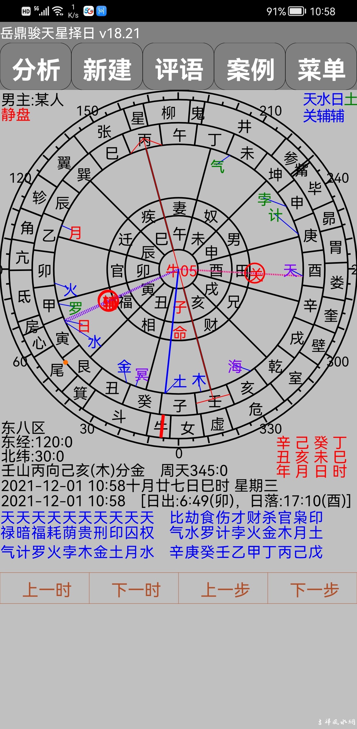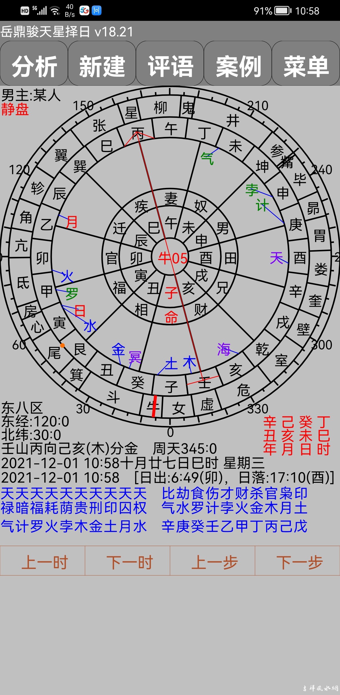 壬山丙向己亥(木)分金 周天345:0 命宫:危月05:20 亥09:07 亥山13:22 度主:月 宫主:木