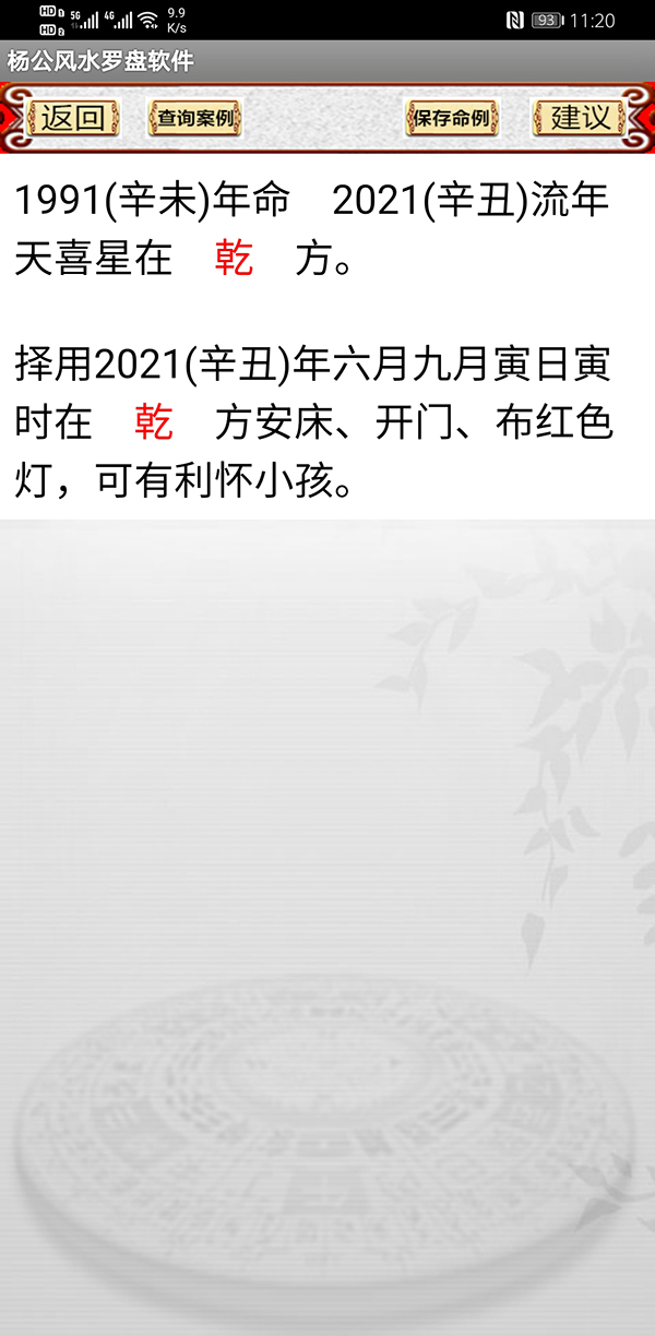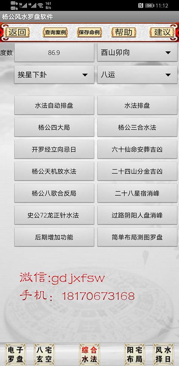 杨公风水罗盘app是一款为相信风水的朋友准备的,通过杨公风水罗盘app你可以了解到更多风水信息,同时获得更多专业的指导。 杨公风水罗盘简介: 杨公风水罗盘:利用手机的相机功能加十字坐标能精测远方建筑方向度数,排玄空飞星,八宅,九星水法,三合水法,四大局,大玄空挨星,拨砂,先后天水法,七十二龙批注,二十八宿消峰,阴宅河洛九星,二十四山分金吉凶,六十仙命安葬吉凶,杨公开门放水,过路阴阳人盘消峰,开罗经立向宜忌,简单布局测图罗盘,史公72龙正针水法,七星水法,阳宅布局,择日排盘等功能。此软件比较适合专业从事风水研究之人。 优惠价:568元 有需要者加微信gn413168 |
