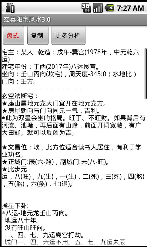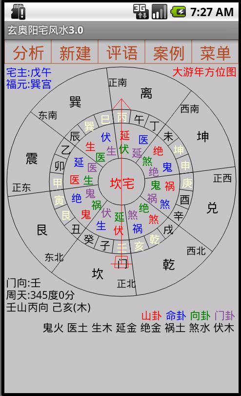 运行系统:android 1.6以上所有版本 华为鸿蒙系统 售价:186元 有需要者加微信gn413168 ※阳宅风水安卓版 支持电子罗盘 最新版本 3.0 运行环境:Android 系统 开发工具:Eclipse 软件介绍: 此款软件按照“玄空”和“八宅”两种阴阳风水学说设计,以玄空为主,来指导人们在建宅时选择有利的时间和空间。软件求得的风水参数以图形和文本两种方式输出,既直观易懂又不乏详细的说明,是风水爱好者、研究者的良好工具。 1:可以排出完整的玄空飞星盘,显示出运星、山星、向星,清晰的二十四山、阴阳标示、座向指示线,一目了然。 2:排出以门向入中之星定的内气星盘。 3:每年的流年、流月盘,支持以“元运定入中之星”和“以门向定入中之星”。 4:还有详细的断语可供参考。 |