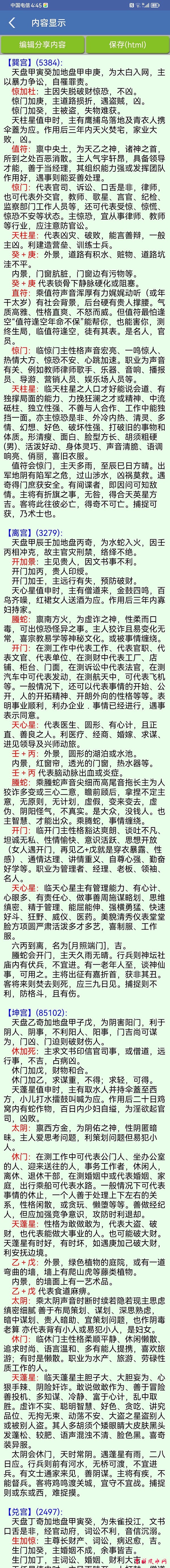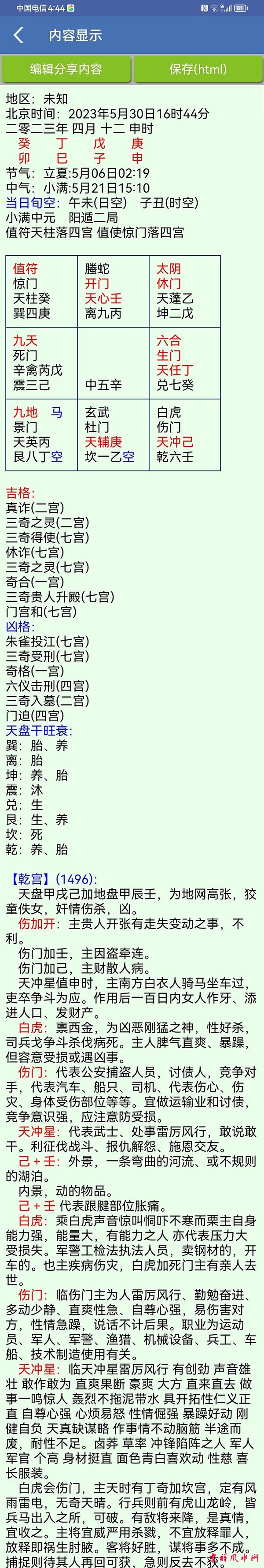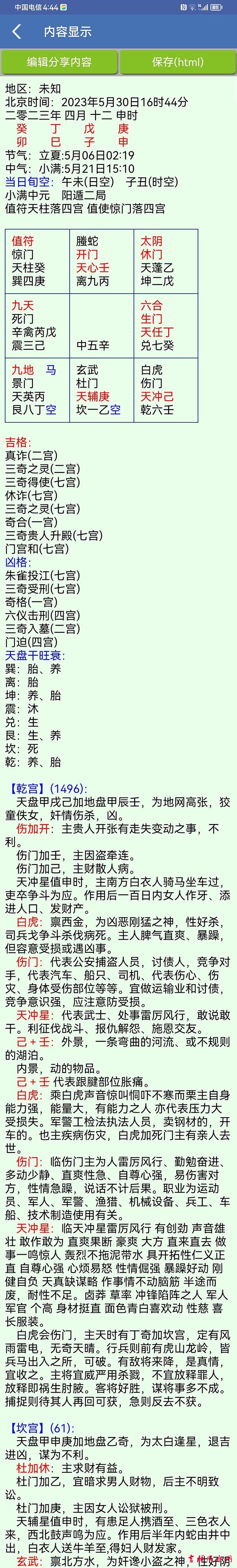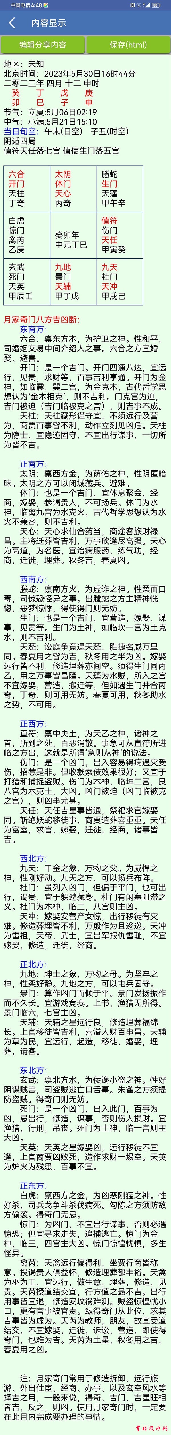 本软件注册费:6年期300元,3年期200元 有需要者加微信gn413168 适用于安卓系统、华为鸿蒙系统使用。 本软件年份跨度是1910到2060年. 本软件时家奇门排局采用两种方法:拆补法和置闰法,用户可根据自己的习惯选用,也可比较两种方法在使用中的准确率孰高孰低。可在程序菜单里的“选项设置”来设定。 张志春先生在其《神奇之门》里提倡使用拆补法,此方法只要掌握一定的规律,随时可手工排局。但置闰法一般要参考万年历,虽然五天一局,但在[芒种]还是[大雪]节置闰难有规律,且不同大师确定的置闰也不尽相同,因此参考奇门节元万年历比较方便。 本程序置闰法中的奇门万年历采用刘金喜主编的《通用易学万年历》(沈阳出版社1993年3月出版)。 “保存示例”可保存当前选定的起局年月日时等信息,针对“时家奇门”。注意要输入“示例名称”。 另外奇门遁甲知识菜单里有大量奇门遁甲资料,供学习参考。 |