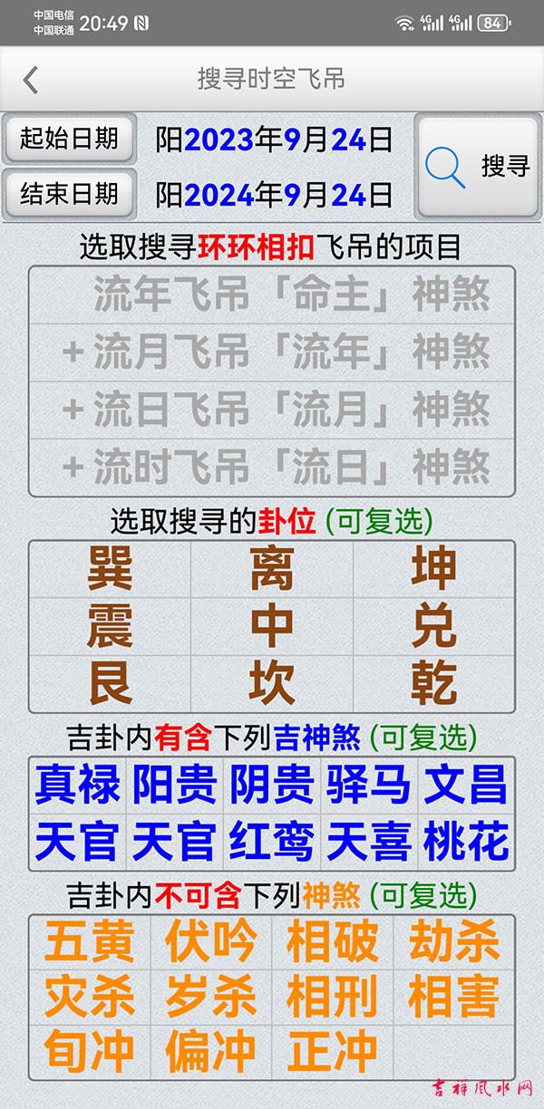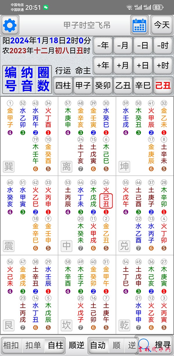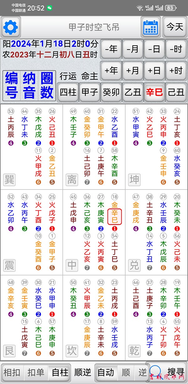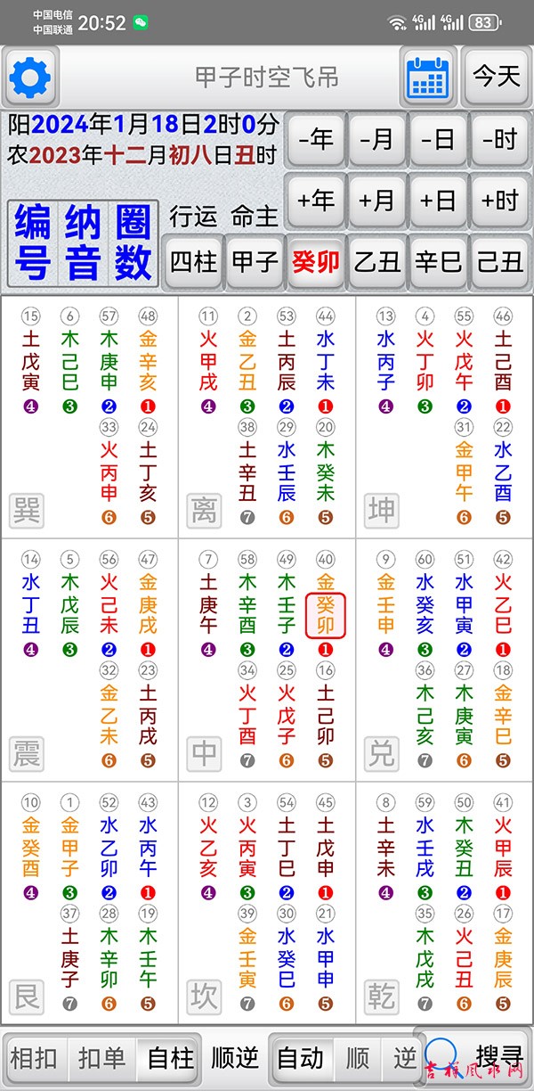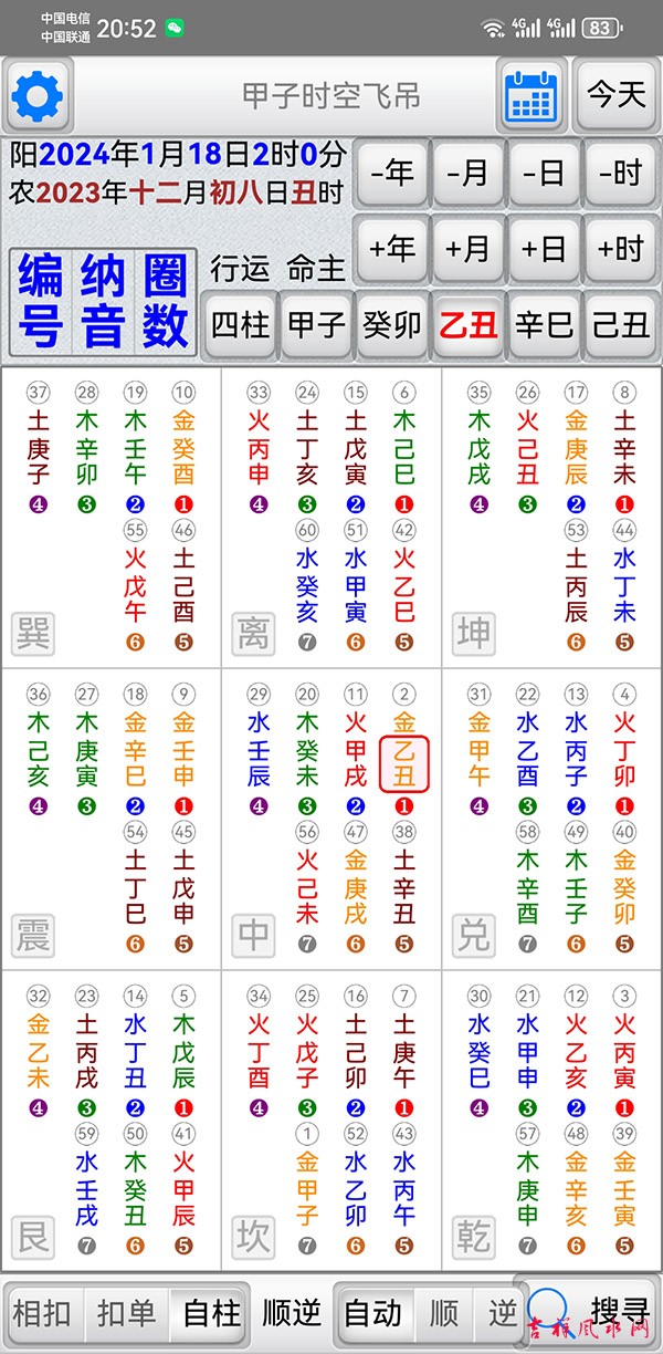甲子时空飞吊软件 v1.2.2软件 有需要加微信gn413168 适用于安卓系统/鸿蒙系统 「甲子时空飞吊」是堪舆择日法的一种工具,它结合了天(时间)地(方位)人(命主)三种关系,找出吉的应用方位。 主要功能: 四柱:年、月、日、时之甲子入中飞吊九宫。 甲子: 输入命主干支入中,排出分佈於九宫的六十甲子。 显示年、月、日、时干支入中,排出分佈於九宫的六十甲子。 显示甲子的「编号」,甲子为1顺数至癸亥。 显示甲子的「纳音五行」(并以颜色区分纳音五行)。 显示甲子的「圈数」,即飞佈九宫的圈数。 神煞: 显示吉神:真禄、阳贵、阴贵、驿马、文昌、天官、红鸾、天喜、桃花。 显示凶神:五黄、伏吟、命破、劫杀、灾杀、岁杀、命刑、命害、旬冲、偏冲、正冲。 飞吊规则一(环环相扣): 选取命主按钮,以命主干支飞吊「命主」神煞。 选取流年按钮,以流年干支飞吊「命主」神煞。 选取流月按钮,以流月干支飞吊「流年」神煞。 选取流日按钮,以流日干支飞吊「流月」神煞。 选取流时按钮,以流时干支飞吊「流日」神煞。 以上一环扣一环,达到环环相扣。 飞吊规则二(单独飞吊): 选取命主按钮,以命主干支飞吊「命主」神煞。 选取流年按钮,以流年干支飞吊「命主」神煞。 选取流月按钮,以流月干支飞吊「命主」神煞。 选取流日按钮,以流日干支飞吊「命主」神煞。 选取流时按钮,以流时干支飞吊「命主」神煞。 以上单独与命主飞吊。 飞吊规则三(自柱飞吊): 选取命主按钮,以命主干支飞吊「命主」神煞。 选取流年按钮,以流年干支飞吊「流年」神煞。 选取流月按钮,以流月干支飞吊「流月」神煞。 选取流日按钮,以流日干支飞吊「流日」神煞。 选取流时按钮,以流时干支飞吊「流时」神煞。 以上单独与自己干支飞吊。 搜寻功能: 提供指定一个日期范围,并指定搜寻飞吊的项目、卦位及不可含的神煞,即可快速度到符合的日时。 指定搜寻飞吊的项目:可以只找年,或只找年月,或只找年月日,或找年月日时。 指定搜寻的卦位:可指定某个方位。(建议全选比较容易找到可用的方位) 指定吉卦位内不可含的神煞。(可依自己用事需求,选取想使用的神煞) 偏好设定: 週首日:设定一週开始的星期。 夜子时:提供夜子时设定。 语言地区:可随时切换介面语言,提供繁体中文、简体中文。 介面字型:提供字型大小调整。 萤幕锁定:不锁定可长时间使用,萤幕不会关闭。 ★ 万年历提供:西元 1600 ~ 2200 年。 ★ 操作介面:繁体中文、简体中文。 ★ 同时支援平板大萤幕任意方向显示。 |