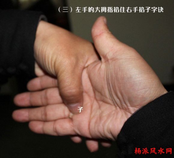 我们很多修行人,打坐修炼时手会掐诀,他们掐的都是「子午诀」,为什么叫「子午诀」?因为无名指的指根这个地方叫子,中指尖这个叫午,所以修行人用右手的食指和拇指掐住左手的子位,然后左手拇指掐中指指尖处,然后翻过来放在腿上,这叫「子午诀」,道家真人「手一支」都是这个掐法。 「子午诀」的作用是什么呢?它的作用是「镇惊辟邪」。一旦修行人受惊,手就自动的掐紧了,这掐紧就能够保护我们人的中枢神经,所以这是一个保护装置。 还有一个作用就是「制幻」,掐住这个诀幻觉不容易出现。 当今许多人学习道教静坐,但是往往苦于念头难除,及无法得气,其实这与静坐时的手印要诀,存在极大关系。倘若得法,则易收到事半功倍的效果。由于道教修炼的手印,自古以来都在师徒间秘密传授,因而世人罕知。为了使大家不再疑惑,现在打破框框,将其中要诀,详细公开于此。 修炼时双手结印,道教称为「掐诀」,又称「抱诀」或「抱印」。修炼手印,称为「太极阴阳八卦连环诀」,又称「太极诀」或「太极印」。 具体做法是:两手掐诀之时,男子以左手虎口,抱右手四指(女子右手虎口,抱左手四指。因为男子左手为阳,女子右手为阳,故以阳手居外,而阴手居内),而以右手虎口,抱左手大指(女子以左手虎口,抱右手大指)。同时,两手大指梢,各自接触另一手心的劳宫穴(在手心正中凹陷处)。 这样两手拇指在虎口形成「太极图」形状(大指相互在另手的手心,就是太极图的两个眼睛,用来接通自身阴阳二气),其余四指代表「八卦」,两手一阴一阳,故此称为「太极阴阳八卦连环诀」。如是阳手护阴手,阴手抱阳手,即是《道德经》「负阴抱阳」之义。 两手合在一起,就象接通了电源的正负极,阴阳二气自然接通。而且阴阳结合之后,马上就会形成一个封闭的气场,心情自然平静下来,两手迅速感到发热发胀,奇妙无比。如此心自然静,念自然停,身自然安,气自然行,对于静坐修炼有不可思议的效果。 不惟如此,即在平常工作和生活之中,如果有片刻清闲,或者在地铁和乘公共汽车之时,两手结印,平静养神,亦常常出现神奇的效果。但是坐车的时候要注意,不要因为入静,而坐过了站。 盘腿的方法,一般人认为五心朝天」的坐姿最好,其实这种方法的最大作用,在于稳固不倒,坐三天、五天甚至一个月,都不会倒。但是一般人,如果不是专门修炼或者闭关,没有必要强制自己,把两条腿压得生疼,来学习这种坐式,不光难以入静,弄不好容易把韧带拉伤,反而多走弯路。 盘腿的目的是为了修炼,而修炼不是为了盘腿。所以我们提倡自然的方法,两条腿可以单盘(即一条腿压在另一条腿上),也可以便盘(即两腿交叉),盘坐困难者可先在座下垫个枕头;如果盘腿太痛苦,也可以平坐凳上,小腿垂直于地面,或者交叉亦可。 但是无论如何盘腿,都要注意手和脚是相反的。即男子结印左手在外,而盘腿时右腿在外;女子则相反,结印时右手在外,盘腿时左腿在外。女子丹法,亦有专门的「跨鹤坐」式,亦遵此原则。 道家子午诀 此为道家「安神祖窍」修法的筑基。一般采用盘坐式:盘膝稳坐,左腿向外,右腿向内(左为阳,右为阴。左腿舒展略向外,右腿卷屈而向内,此为阳抱阴)。也可采用自然端坐。 左手大指,捏定中指。右手大指,进入左手内。(左手拇指掐本手中指尖为午诀。右手拇指从左手虎口插入,按在左手无名指指根处为子诀,其余四指合抱在外)。 右手在外,左手于内,为阴抱阳。此名子午八封连环诀。 结印后,放置腹前。大约于肚脐上一寸五分位置,离体约一拳为余为自然。 一切以自然松静为宜。如果你所学功法要求意守某一特定位置。私下建议:不如不守,似守非守即可。 如果此印实在不好结,采用握固印:两手拇指分别入掌中,其余四指握拳而印,分别放置两大腿弯处(腹股沟侧)。卧功修炼时,放置于体侧或肚腹部(肚脐外开各二寸左右即可)。掌心向下会自然些。 道家丹功,古时称玄功。武当内功,是以性命双修入手,经过修炼,达到平阴阳,调气血,打通大小周天,内丹大成,祛病延年,健身长寿,以终天年的目的。此即古人称的「得道成仙」。 武当百日筑基功,也是练好武当武术的基础内养功,是十分重要的配合功法。 武当内功共有四步功法,即练精化气,练气化神,练神还虚,练虚合道。这几层功法一层比一层高妙。 |