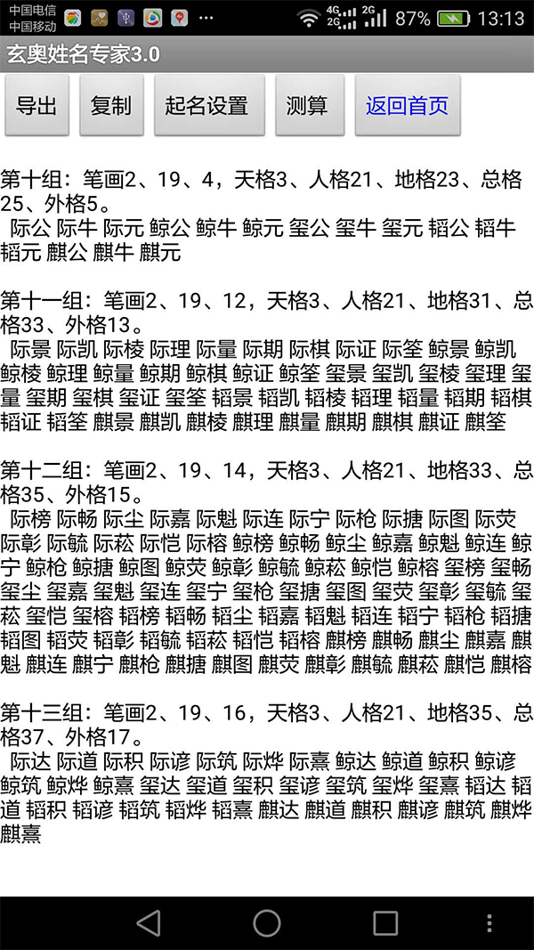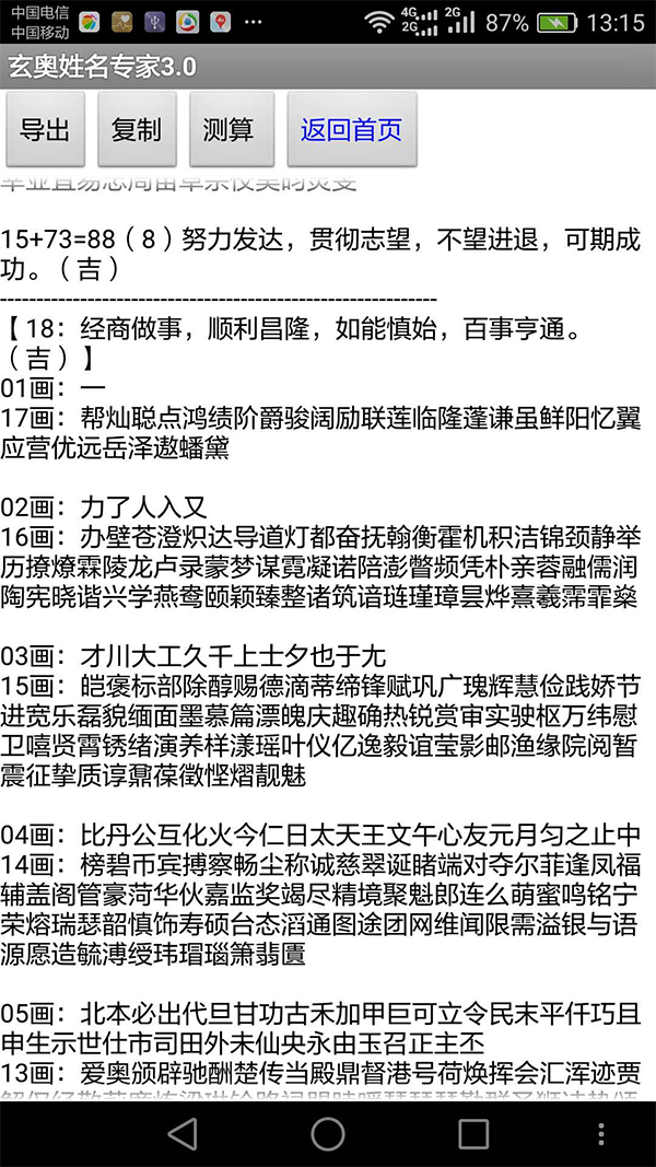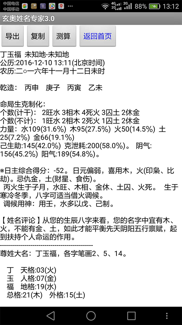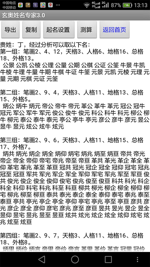 适用于安卓系统使用,鸿蒙系统使用 有需要者加微信gn413168 软件介绍: 姓名,蕴涵了人的精、气、神,传达着天地之玄机。从中国周易的角度来看,一个人的八字(出生时的干支)蕴含了人一生命运的所有信息,而姓名则可影响人的命运,好名可助人成功,坏名却会令人生蹇滞。此款软件以个人的八字配合姓名五格理论来研究姓名的作用,具有以下三大功能: 1:姓名分析--综合了八字和姓名五格、三才配置、81数理来评价姓名,并用百分制来量度姓名的好坏。 2:个人起名—按八字的喜用神和数理吉凶等,来找出有利的名字供起名时参考。 3:公司起名-为您的公司起一个好的名字,让事业发展更顺利。 4:姓名字典—有组合查询、笔画查询等灵活易用的查询方式,可快速找到想要的汉字。还有“81数理个人”和“81数理公司”的数理解释,支持数字和汉字两种方式查询。 3.1版升级改进 1:增加各省下辖市县区经纬度数据。 |