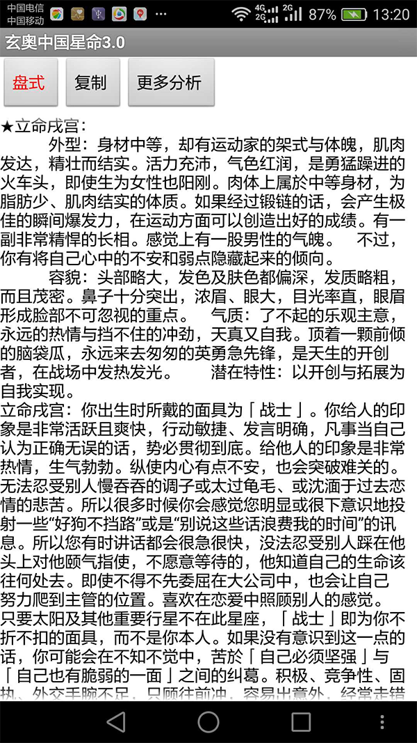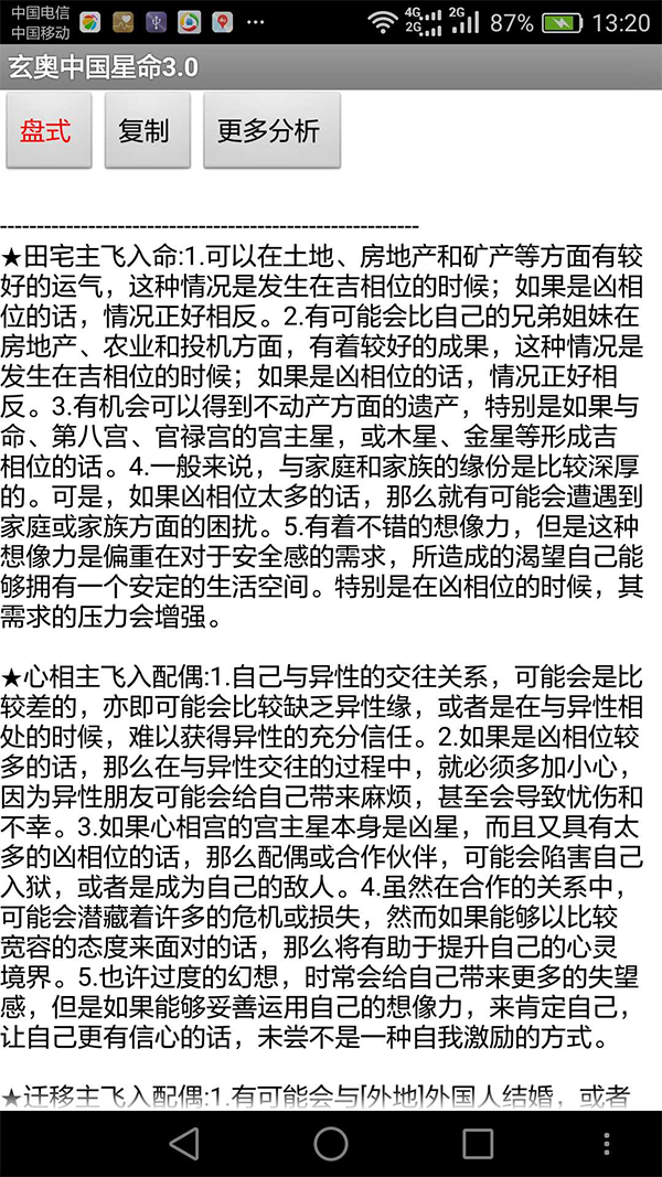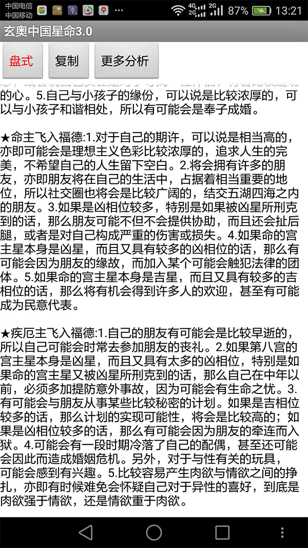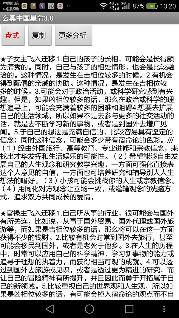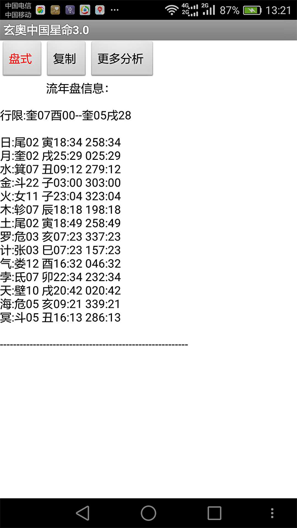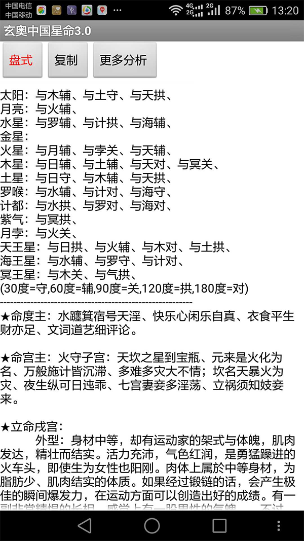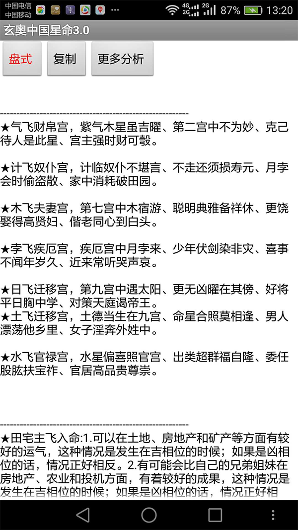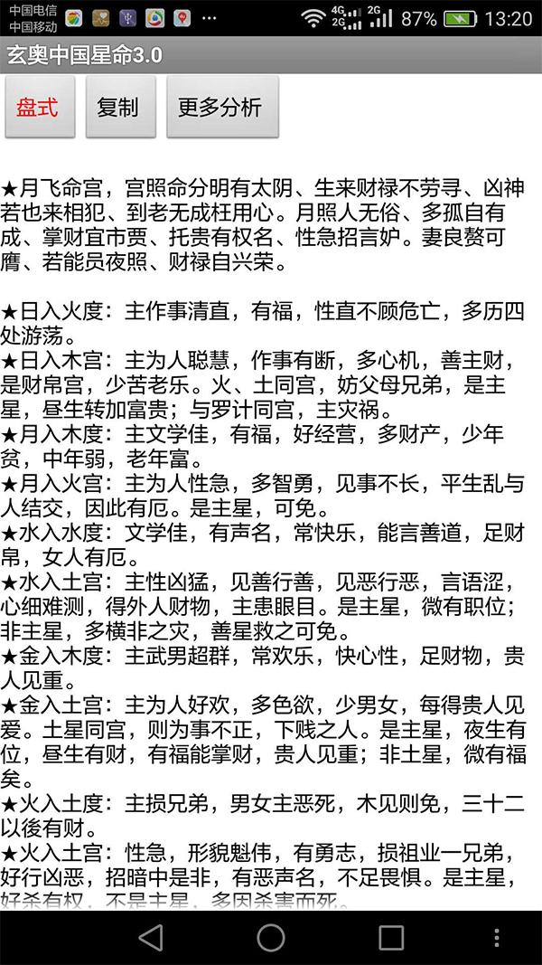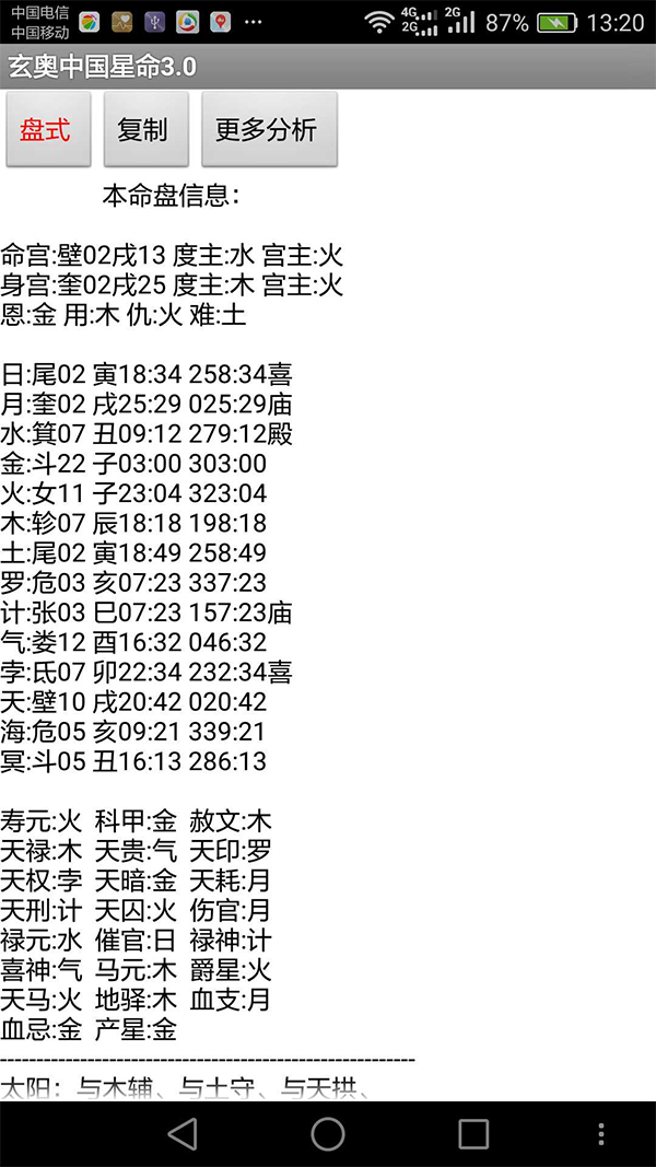 中国星命术,源远流长,最早可上朔至唐代。一代宗师张果著成《张果星宗》,用日、月、五星、四余的关系来预测人的一生命运,本软件能根据出生时间排出星图,所有的星位关系在图上一目了然,使用专业的天文计算方法,求得的星体位置达到了很高的精度,是了解、研究易学的良好工具。还有大量断语可以参考。
