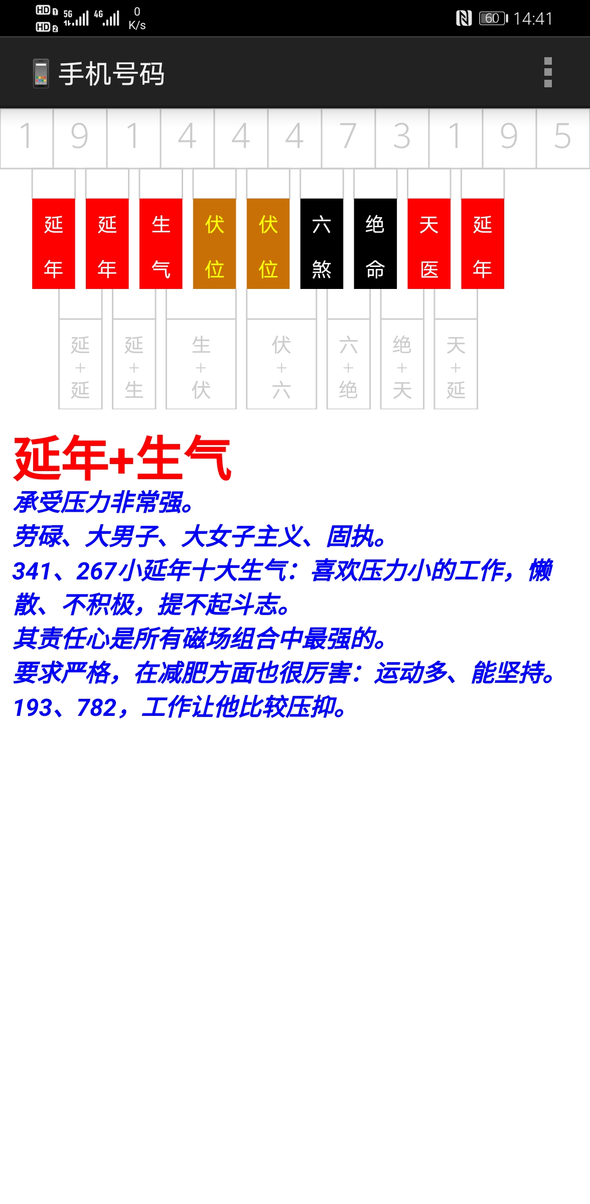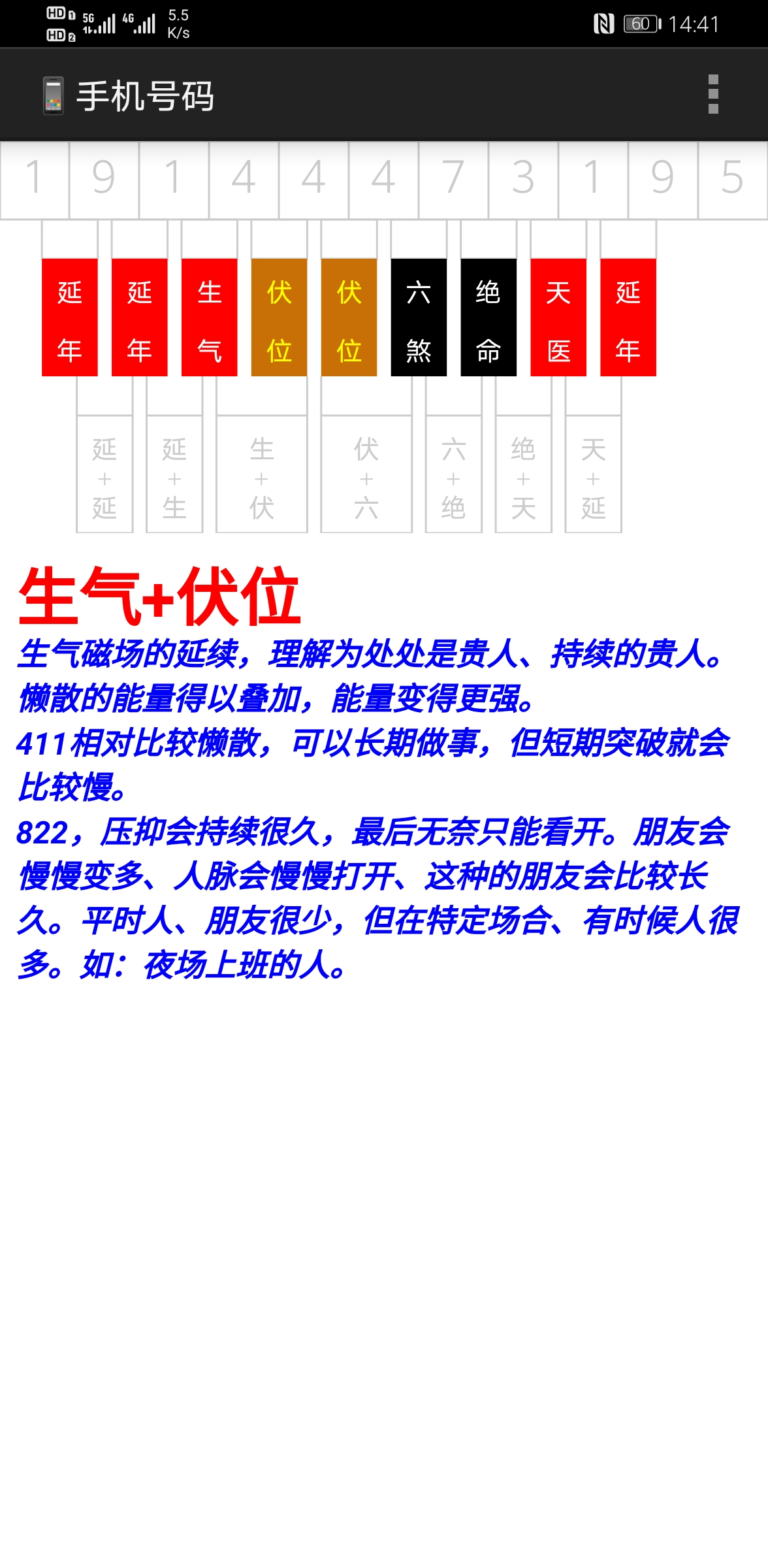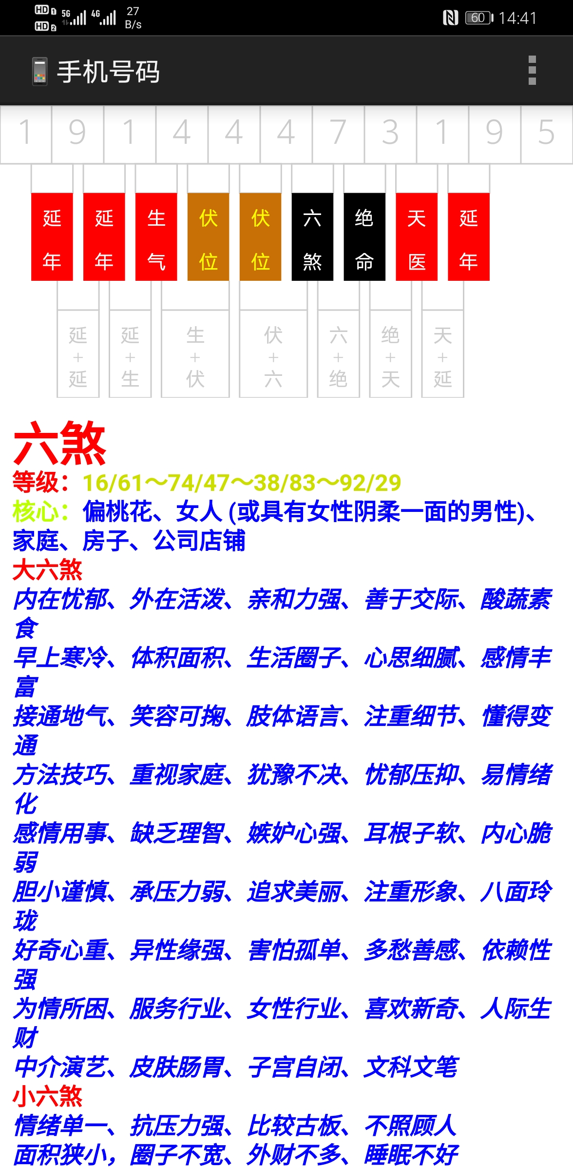 这是一款数字能量易学专业软件,非娱乐软件。 数字能量关乎您的事业、财运、身体、学业、婚姻感情等吉凶祸福,如手机号码、身份证号、微信号码、QQ号码、汽车号牌、银行卡号、门牌号码、各类密码,都是有能量的。经过易学工作者上万次验证,是真实有效的。